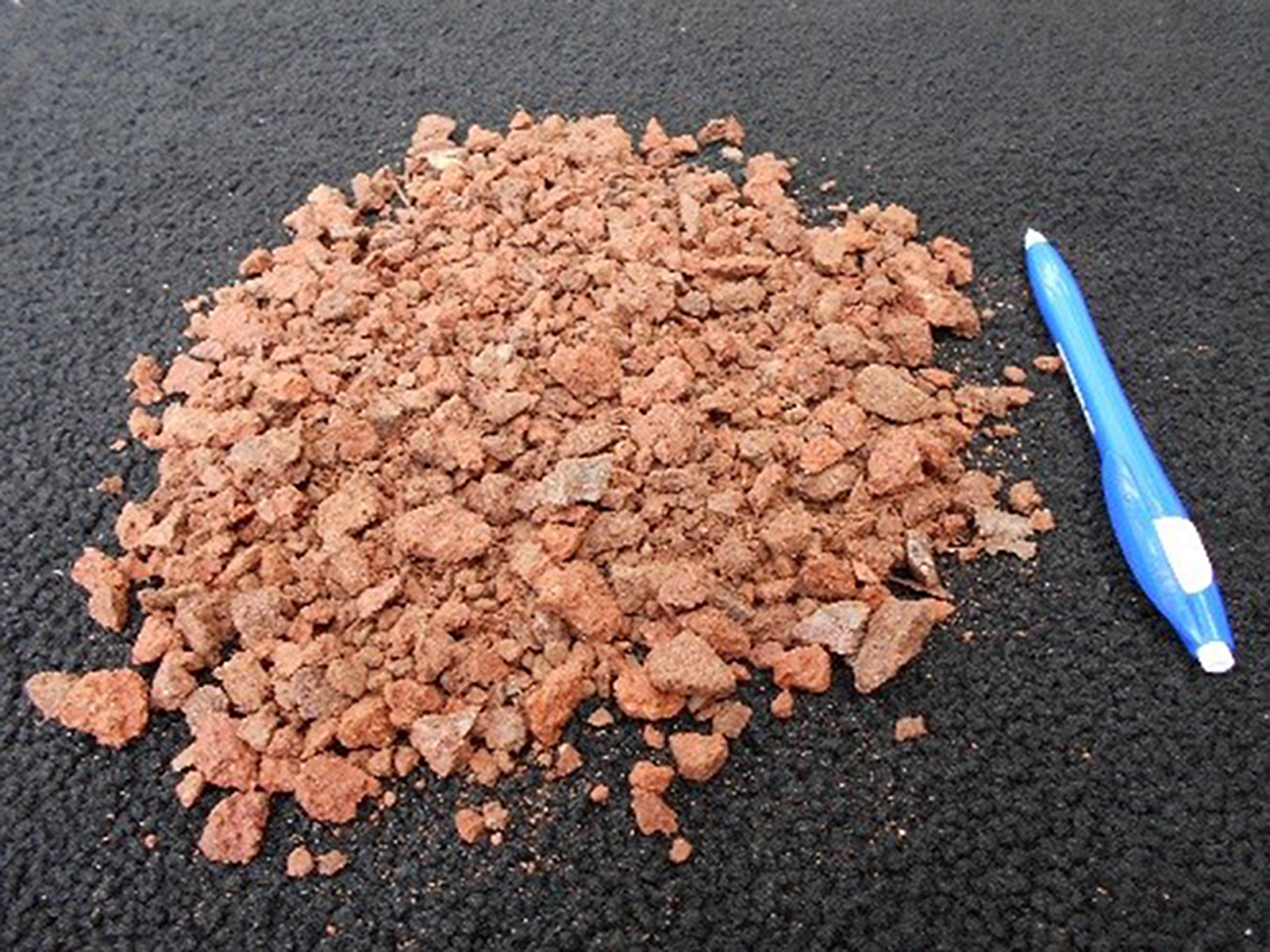 Brick Fines - Minus 3/16" - Brick chip fines are used on baseball and s