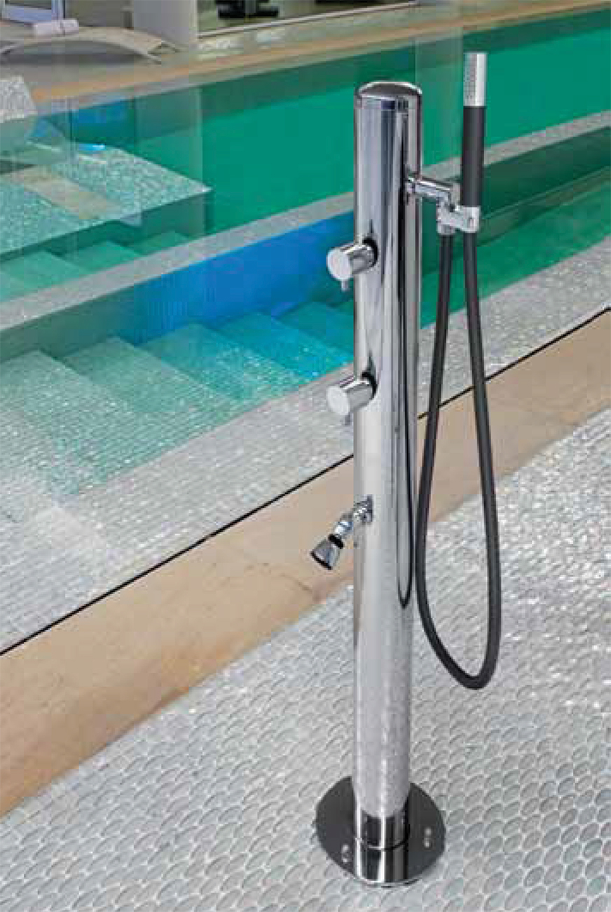 Stainless steel outdoor showers - leave dirt, sand and debris outdoors where it belongs! We manufacture stainless steel shower units that are resistant to damage from harsh weather and pool chemicals.