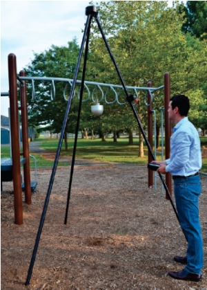 The Triax 2015 system is a playground surface impact test system, compliant with worldwide standards for the measurement of shock and head injury criteria values as would be experienced during an impact of a head on a surface system.