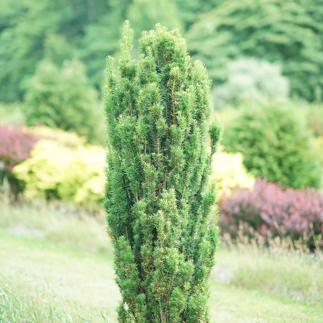 Similar to Stonehenge® Taxus, but even skinnier. There's no pruning, shearing, and little to no spacing needed for this dense, dark green columnar yew. We've been watching this plant for over eight years, and it holds its dark color all year long and has never winter burned. It's useful...
