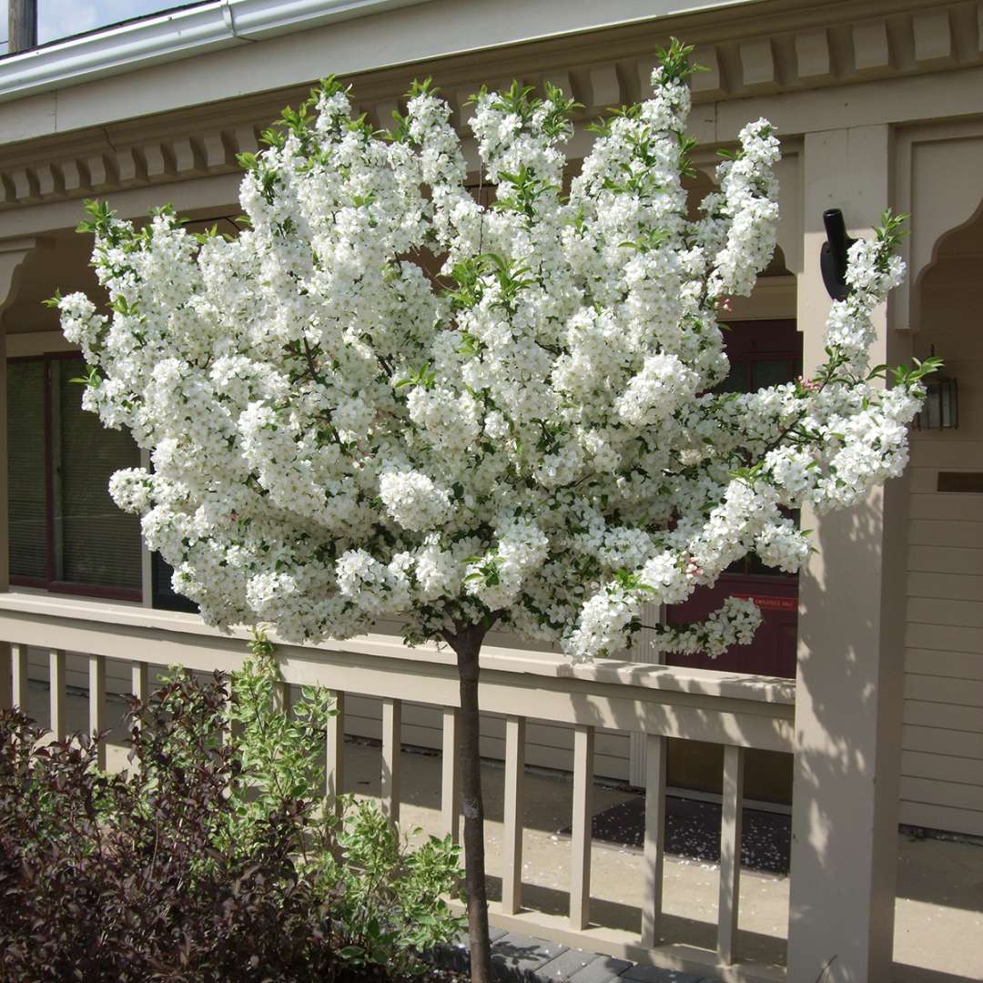 True to its name, this useful crabapple is a confection of fragrant white flowers in spring perched on top of a sturdy trunk. Tiny, shiny red fruits in fall attract birds and wildlife. Thanks to its truly dwarf genetics, it perpetually maintains the neat form that will make homeowners everywhere fall...