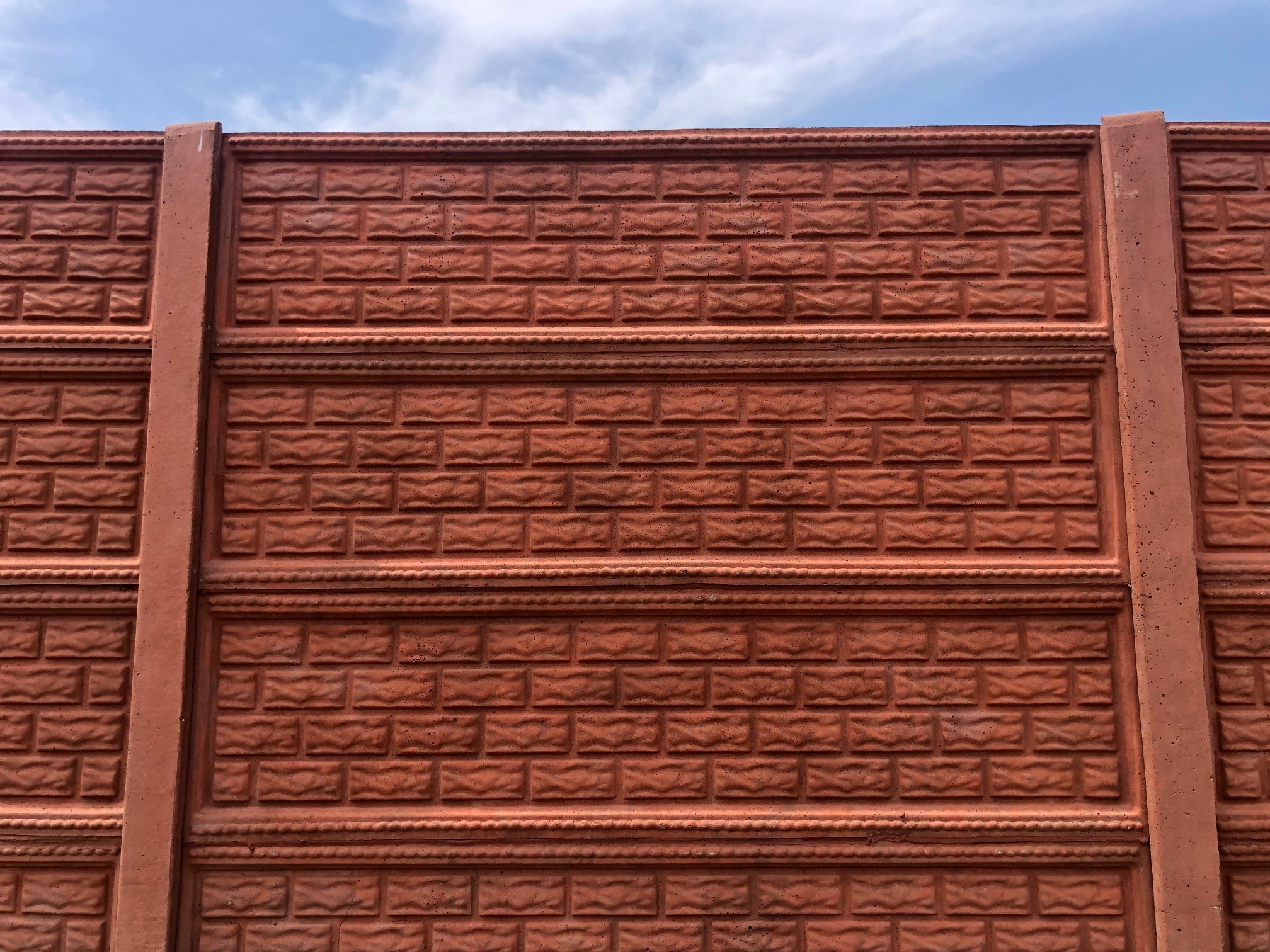 StackWall's red "Beaded Brick" gives the appearance of actual brick with a cured strength of 8,000 PSI at 28 days, lasting far longer than actual brick walls.