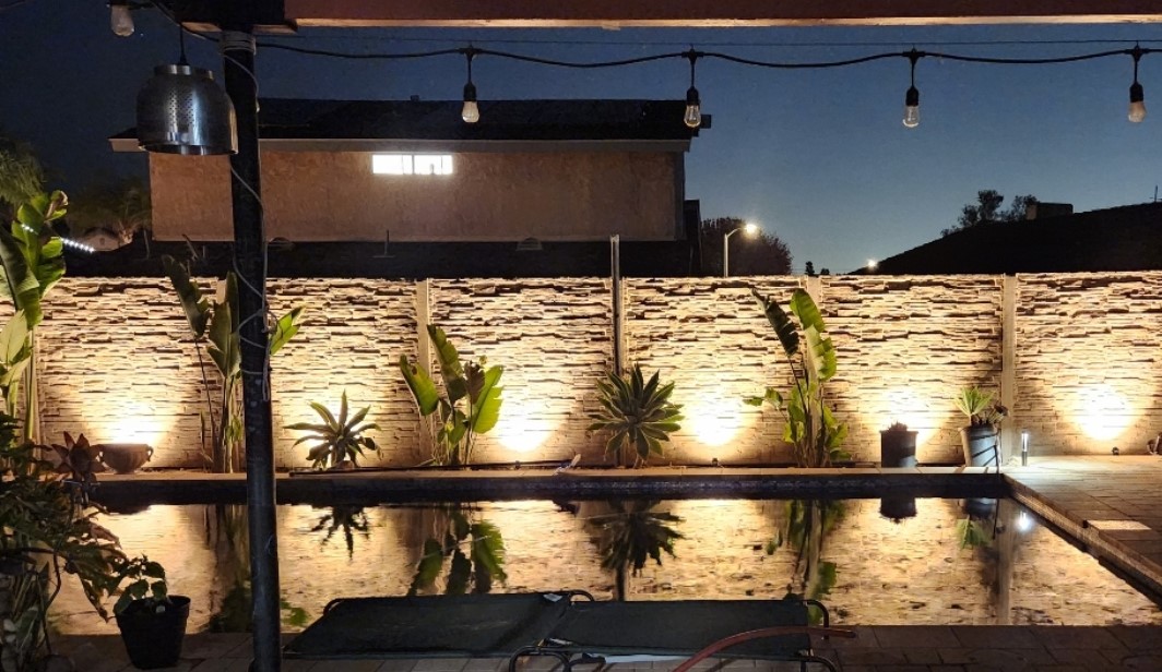 Get creative and showcase your StackWall with landscape lighting to enhance your backyard into a cinematic masterpiece.