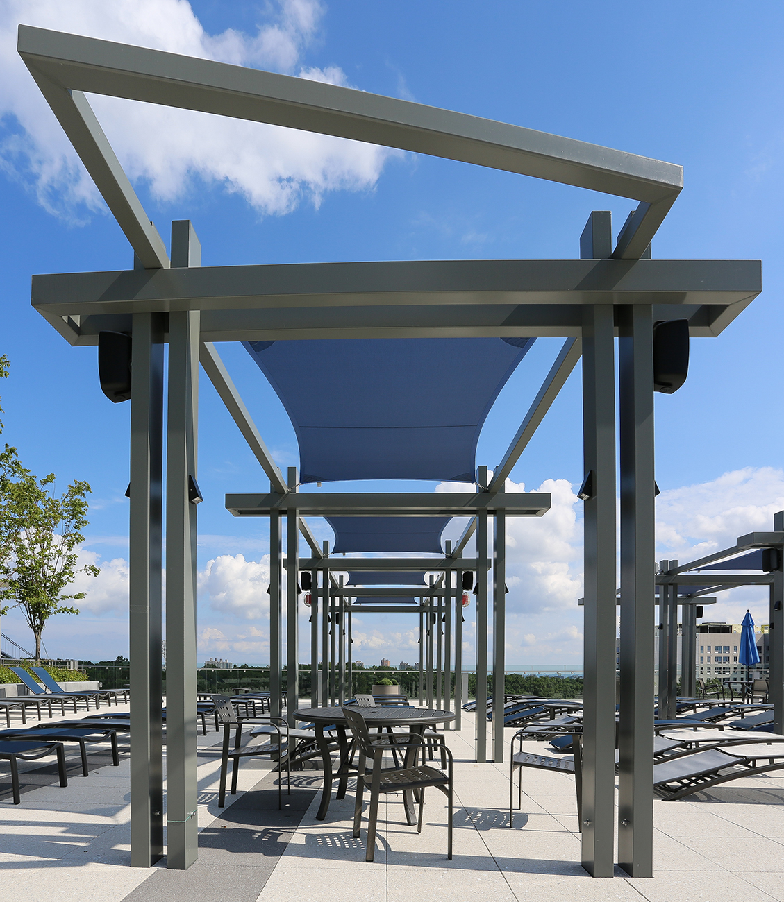 The Decagon - This structure stands proudly as the amenity area centerpiece at The Lofts at Pier Village in Long Branch, New Jersey. This structure features 10 faces and is beautifully cantilevered in all directions, creating maximum shade coverage with minimal obstruction for guests. The design was...