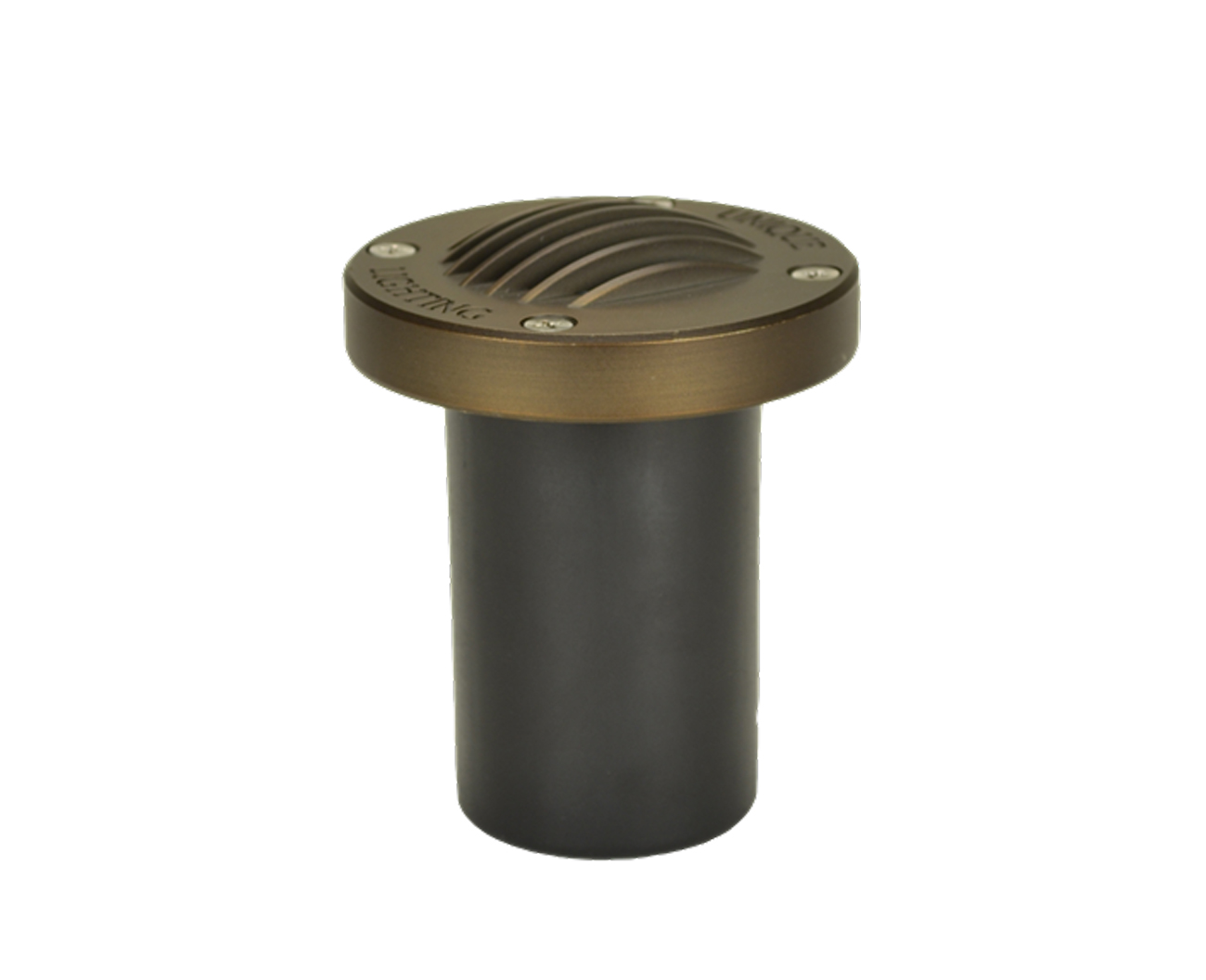 A powerful in-ground well light, the F100 uses a FLEX GOLD™ Series LED lamp to cast an ample beam spread along any landscape element. Its dual cut body allows for flush surface or angled installation options. The F100 comes with a rubber gimble ring for lamp adjustment and a PVC composite debris guard.