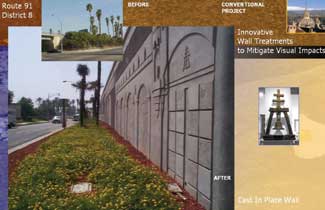 Commuters will soon see a unifying theme of textured wall treatments incorporating historic and cultural design elements along the corridor of State Routes 60/91 and Interstate 215 through the cities of Corona, Riverside, and Moreno Valley. Retaining walls and sound walls don?EUR??,,????'???t just buffer freeway noise anymore. They may provide motorists with a glimpse of a city?EUR??,,????'???s personality.
