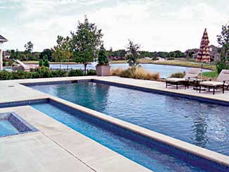 The client purchased a tract house next to a small lake and wanted to add a zero entry swimming pool and cabana for use by elderly parents and other family members. Since the site is very small, constrained and congested, Taber Coppola developed the pool with an infinity edge in order to make the space appear expansive by taking advantage of the borrowed view of the lake.