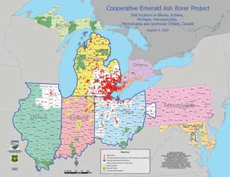 Trees in DangerMore than seven billion trees are currently at risk, each facing a slow two to three year death. Emerald ash borers attack all North American ash trees including white, green, and black ash and all horticultural varieties of these trees. All North American ash trees, from the smallest saplings to giant trees, are vulnerable. ![]() The EAB is changing the face of the tree landscape throughout the midwest. Alternative trees such as Maple, Ginkgo, Kentucky Coffeetree, Oak, and Elm are now being planted to prevent the ash borer spread. Photo: invasive.org Curbing the SpreadTo combat the spread of the borer, the U.S. Department of Agriculture has implemented quarantines in counties where the insect is detected, meaning no trees or firewood can be transported out of the area. In addition, all ash trees within a half-mile radius are destroyed. Companies and facilities that violate these orders are subject to large fines. Wasps to the RescueAccording to The Grand Rapids Press, in July after years of preparation, nearly 1,600 imported Chinese parasitic wasps were released in Michigan counties. Without any natural EBA predators in America, officials were forced to import the wasps, which have kept the pest in check in China. Though only the size of a sesame seed, the stingerless wasps lay eggs in immature ash borers or in ash borer eggs, killing the eggs or larvae before they can become beetles. Baby wasps emerge from their hosts three weeks later, fly off and repeat the cycle. You are probably asking what will be needed to kill the wasps when they become out of control, but scientists are confident their release will not have any unintended ecological impacts.