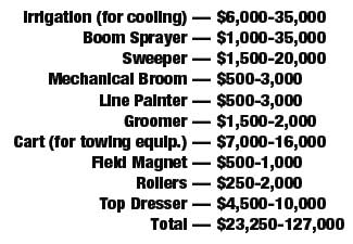 The initial cost of purchasing maintenance equipment for a synthetic turf field can cost as much as the equipment needed to maintain a natural grass field. The following is a list of basic equipment for artificial turf and estimated costs, excluding any repair costs.