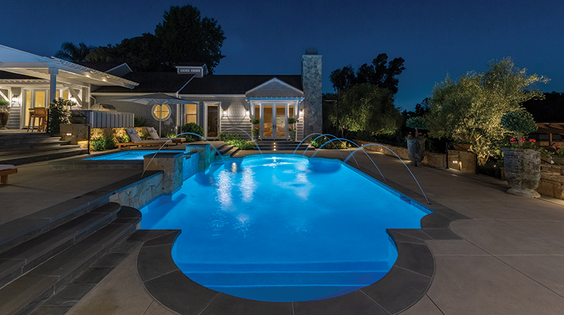 Dense Carrotwood Trees (Cupaniopsis anacarioides) that made the original pool area feel constricted were removed, the existing pool was re-tiled and re-plastered, the spa was redesigned to be slightly elevated for easier access, and the existing pool deck was refinished with Belgard's Aqualine Series concrete and Bluestone coping and edging.