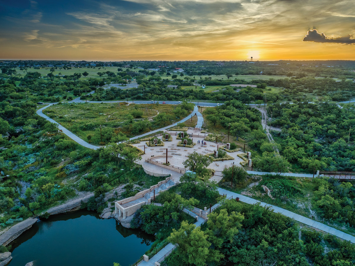 "Our historical research was critical in the successful development of this site," Cook explained, "because of that we were able to generate a design that we felt reflected the centricity and importance of the spring in the region for thousands of years. The site somewhat designed itself. We have had landscape architecture classes from Texas Tech University visiting the site and we tried to emphasize the enormous importance of what a good site analysis can do in the design phase."