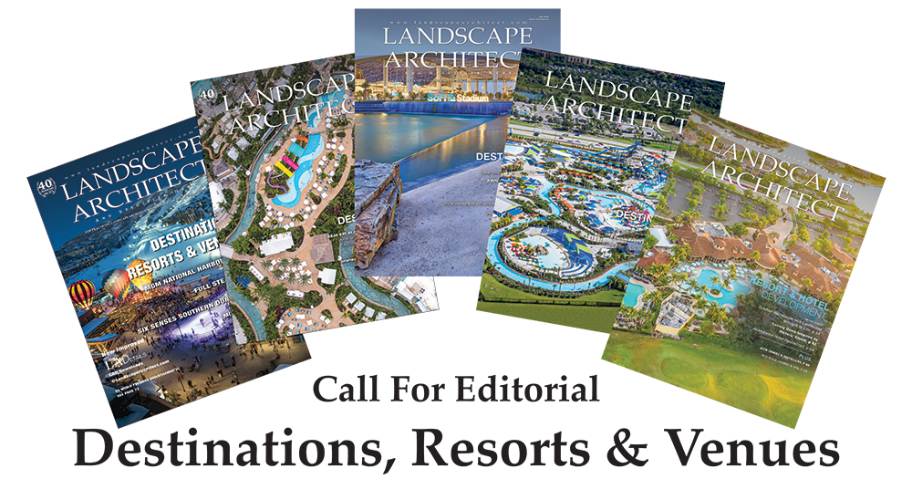 Submitting is Simple and Worth the Effort! 1) Submitting your project(s) is free and only requires a short list of elements (see below) 2) If chosen for publication, you will work with LASN Editorial to develop the completed Feature Article. 3) Every properly submitted project will be featured on the home page of LandscapeArchitect.com. Did You Know . . . 22% of Landscape Architects Over the Past Two Years Have Been Involved with a Destinations Project! In Fact, LASN Readers Design and/or Build Every Trend-Setting Landscape Development in the Nation In Addition to 19,000 Landscape Architects, LASN Also Reaches Developers and Development Professionals, University, Zoo and Amusement Park Facility Directors, City Planners, Parks Departments, and More.